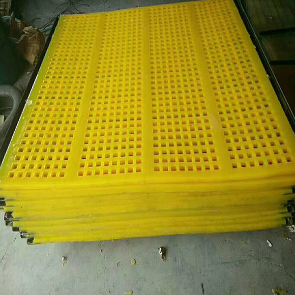 按聚氨酯篩板結(jié)構(gòu)形式分為四種: 鑲嵌式 螺栓聯(lián)接 壓條聯(lián)結(jié) 篩鉤聯(lián)結(jié)。例如壓條連接式:請先將篩板放置篩面上,然后根據(jù)篩子的支撐梁結(jié)構(gòu)進行安裝。一般應在篩機的兩側(cè),篩板的上層,沿下料方向用寬度適宜的u型長條鐵板隔適當距離鉆上螺絲孔,然后用螺栓與底層支撐梁擰緊,使篩板牢牢固定在中間。支撐梁和長條鐵板與篩板的接觸面好用橡膠條(可利用舊膠管)襯墊。篩子中間的支撐梁上方,也可按此方法安裝。我廠生產(chǎn)的篩網(wǎng)其抗拉強度,反彈指數(shù)、耐磨性能均處于國內(nèi)外同類產(chǎn)品的先進水平,可滿足各種等級機配需求。